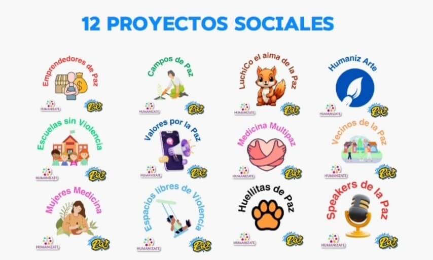 En la siguiente imagen, les compartimos el nombre de los 12 proyectos MULTIPAZ.